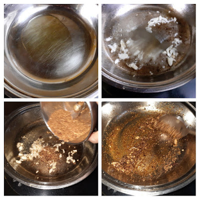 - In the same karahi add 2 tsp oil, reduce the flame and put in the crushed garlic and fry. As they start turning brown add the prepared masala powder and continue to fry. If the masala becomes too dry add another teaspoon of oil and fry.