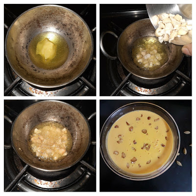 - Fry the Cashewnuts to a golden colour and add them to the kheer. The delicious Carrot Kheer/payasam is ready.