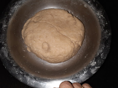 Take the wheat flour in a deep dish or a large plate. Add salt and the oil. Mix well and add water little by little as you knead to form a stiff dough. The dough must be stiffer than the Chapati dough. If the dough is loose, add a little more flour and knead again. Form a ball of the dough. Apply a little oil to your palms and spread it on the dough. Cover and rest it for half an hour.