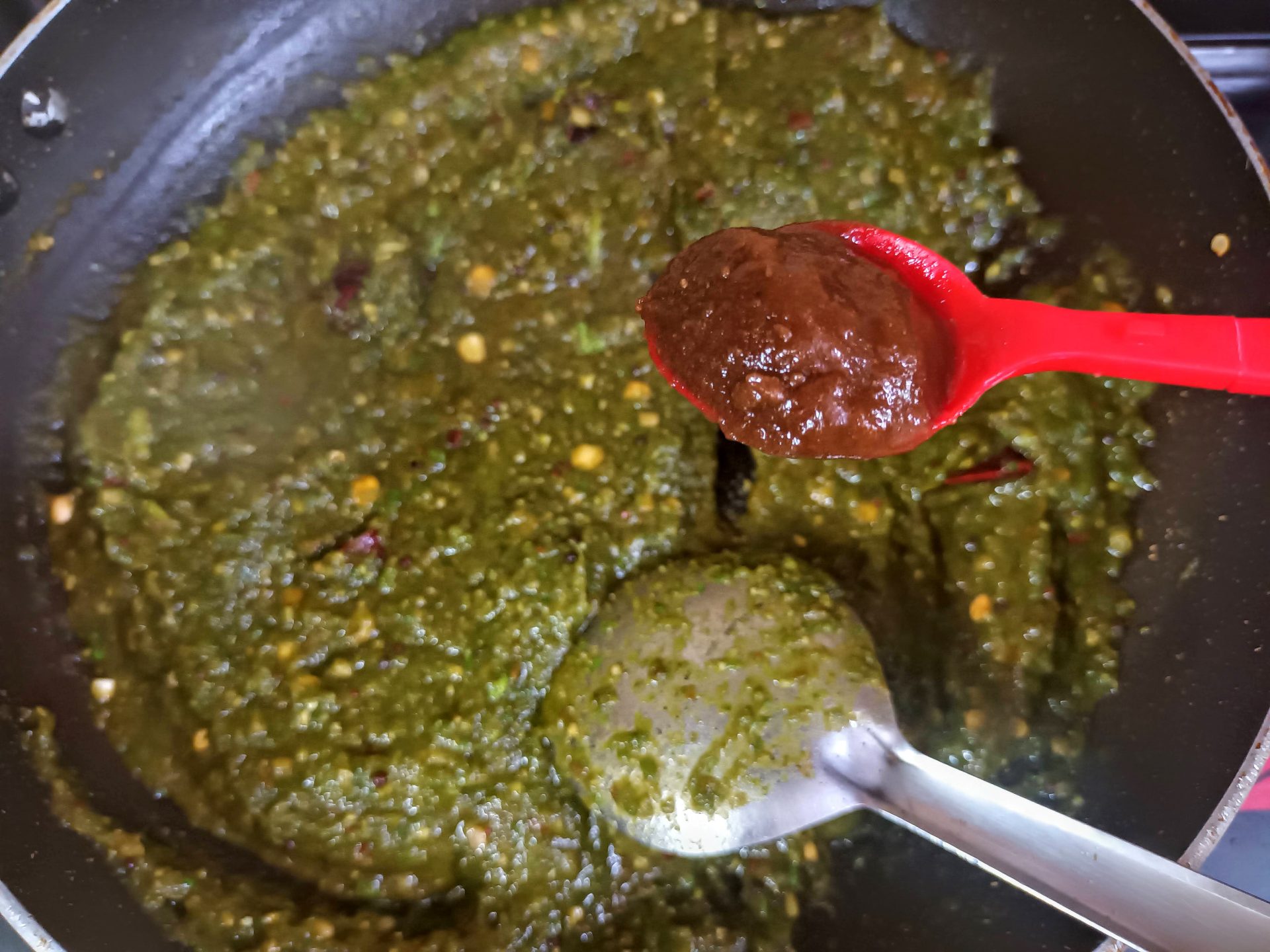- Add 1 to 2 tsp of Tamarind paste,and let it cook another minute or two.