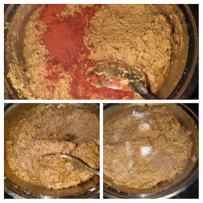 - Now add the ground paste and stir constantly and don’t allow it to stick to the pan. Fry for 2 minutes and add salt, red chilli powder( only if you want it spicier)and continue frying. The raw taste of the peanuts should subside.