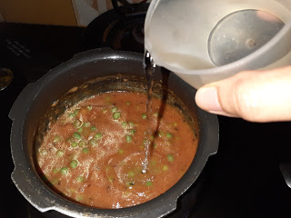 - If you want to use cashew nuts instead of the Besan then, after adding Jeera saute onion, ginger garlic paste and cut tomatoes until they turn soft. Cool and blend in mixie. Pour this paste into the cooker and continue from step 4.