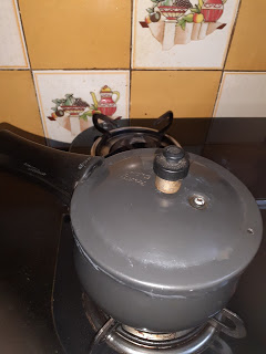 - Add 1 cup water, give a nice stir close the lid of cooker and let 6 whistles come.
