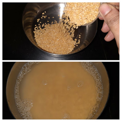 - Take oil in a pan and add the mustard and cumin seeds, add the chopped ginger followed by all dry masalas. Fry the masalas in oil for 30 seconds. Now add the ground Dal and mix nicely such that the masala coats the dal mixture, now add the tamarind pulp, jaggery and cook for 2 minutes. Any moisture in the mixture should evaporate. leave the mixture to cool.