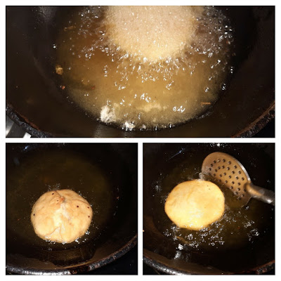 - The temperature of the oil is very important as very hot oil will result in soft crust. Low to medium oil gives a crunchy crust. To test the oil, drop a small bead sized ball of flour in the oil. It should sizzle but not rise on top immediately. This is the right temperature for the oil.