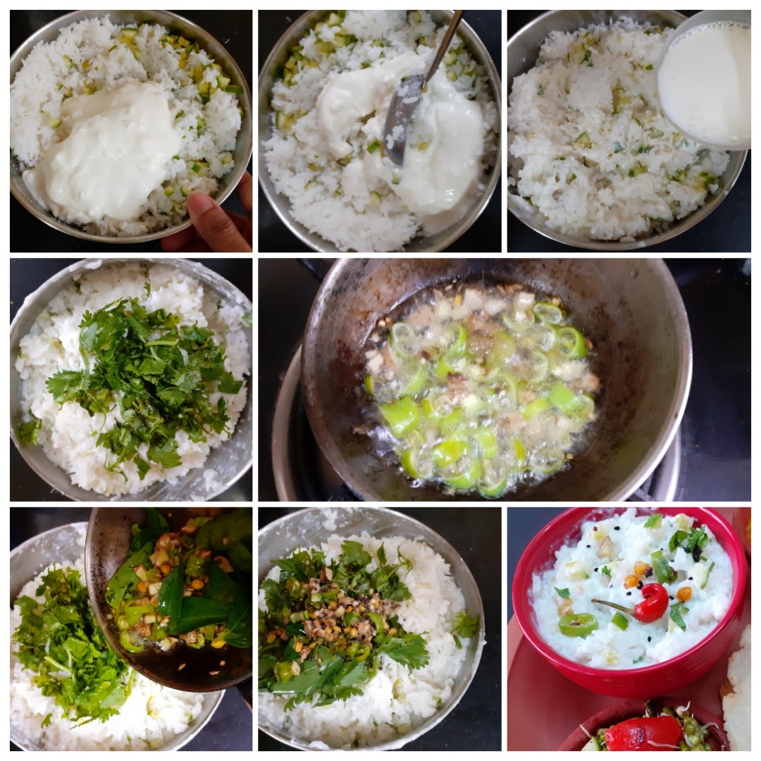 - Using small grained rice gives the curd rice the right texture.