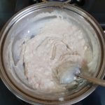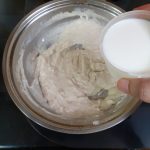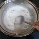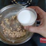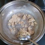 - Now to the same pan add 2 tbsp butter. When it melts add the flour gradually and keep stirring simultaneously. The flour should get nicely toasted in the butter, but should not burn. The flour may turn lumpy,but don’t worry.Add some more butter if required and toast the flour well. Now turn off the flame,and gradually add one cup milk. Stir nicely and dissolve the flour nicely making it a lump free mixture and turn on the flame now.