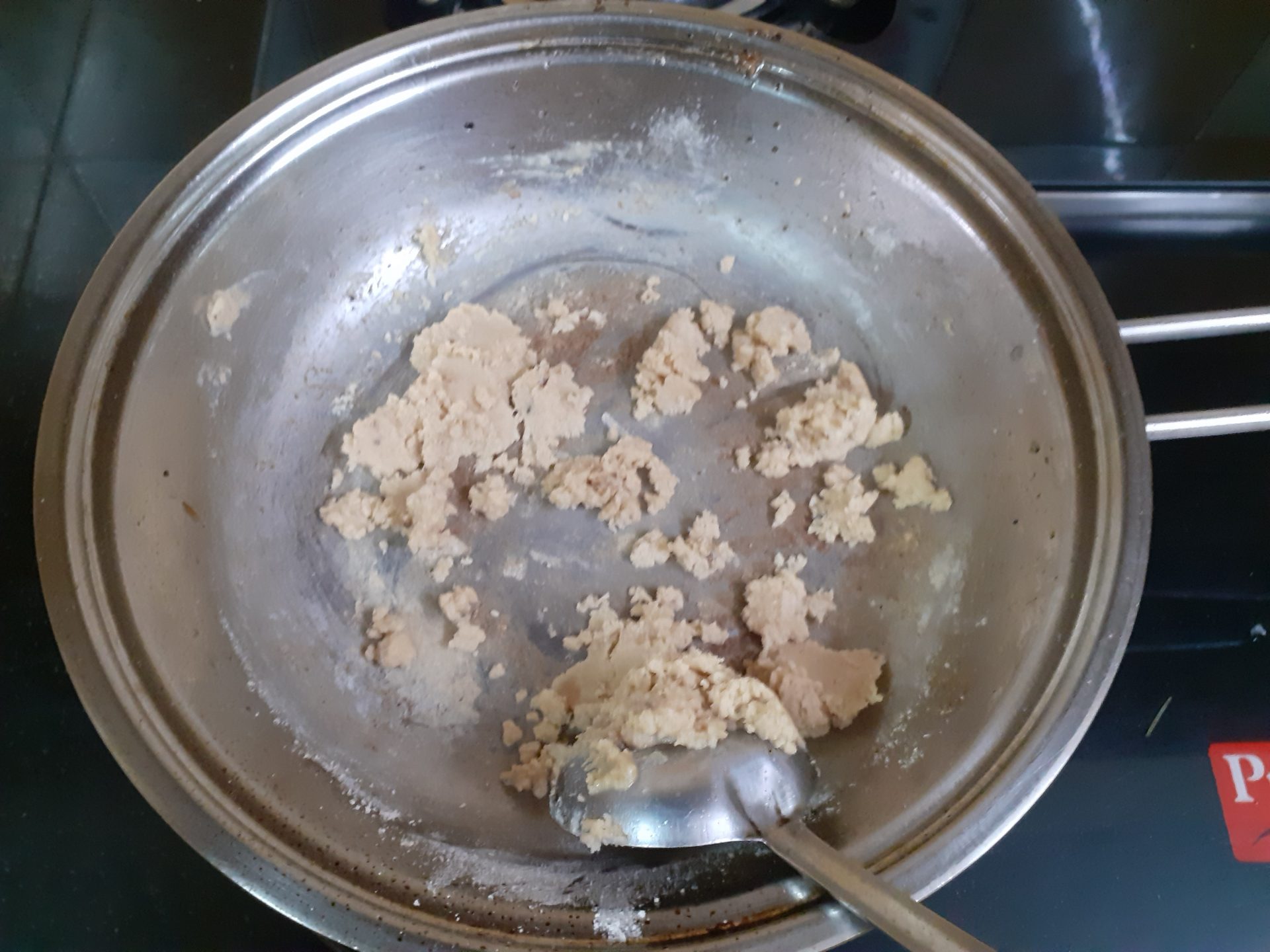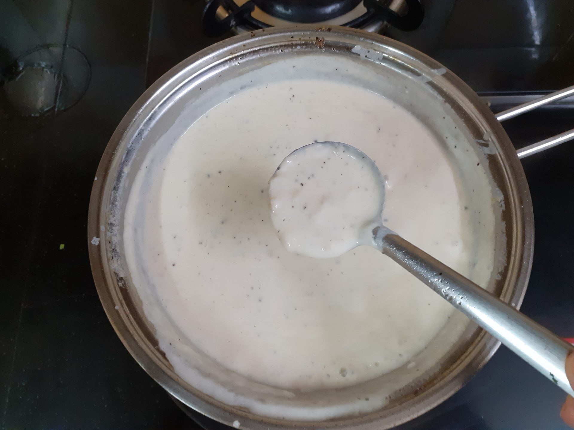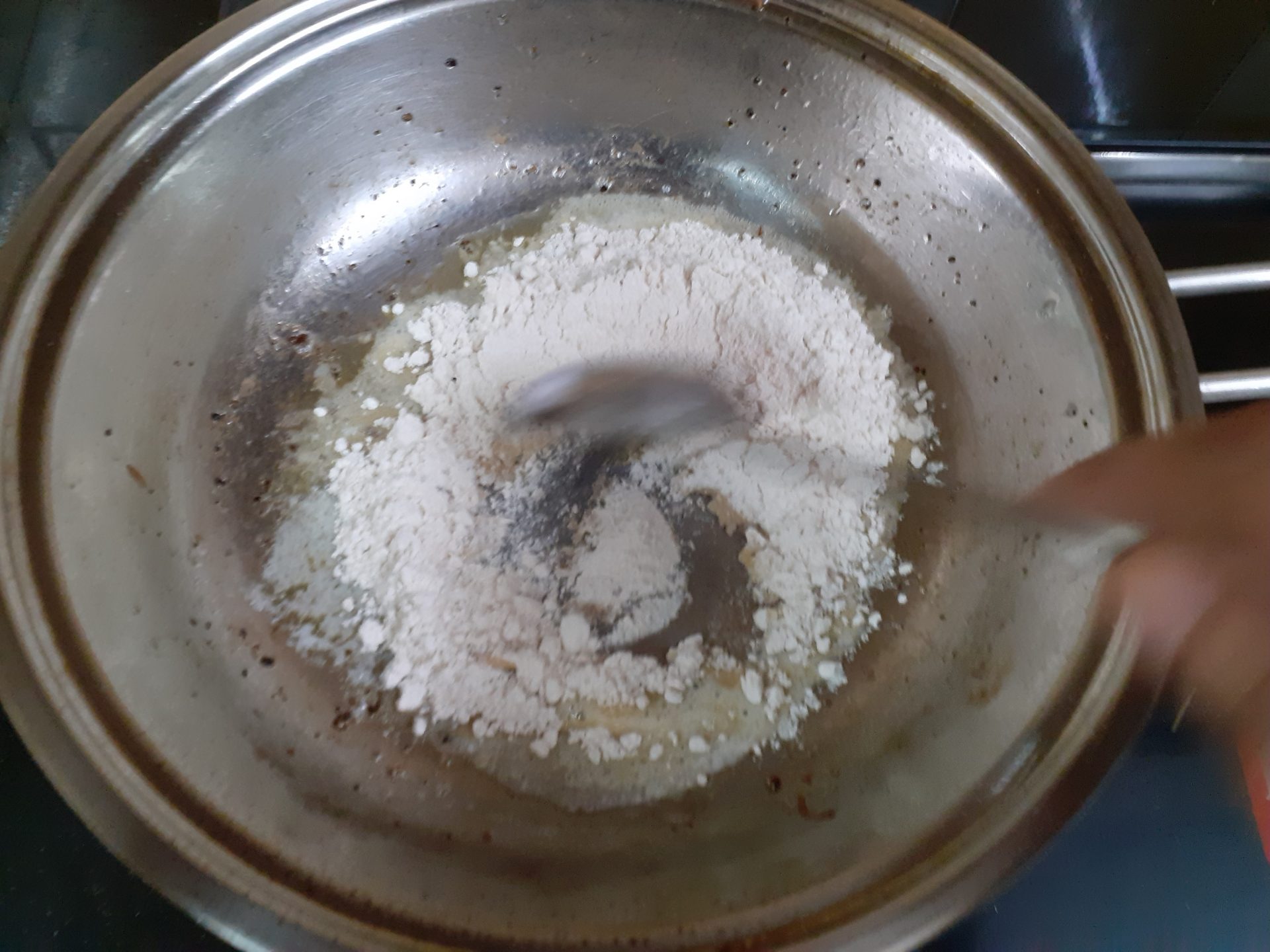 - Roasting the flour in butter and making the roux must be done on low flame.