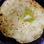 - Now heat a Tava/girdle and put the rolled out dough on it.Drizzling a little oil cook on one side, now flip and cook on the other side. cook until small black dots appear. Repeat for all the dough. Serve them hot.
