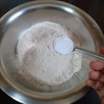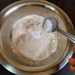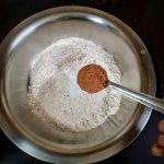 - In a bowl take the whole wheat flour. Add Baking soda,salt, cinnamon powder, and mix well. Transfer to another bowl. Keep aside.