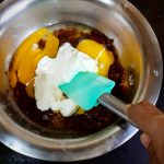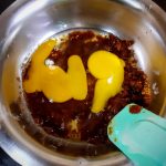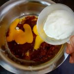 - Now in a bowl take the brown sugar, add coconut oil(or any neutral oil), eggs, and curd and whisk them all well.