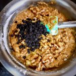 My recipe is very basic and you know my love for one bowl recipes. I have just added some choco chips for the chocoholics at home and some walnuts for me. Brown sugar, eggs, and coconut oil combine to make this bread super moist.