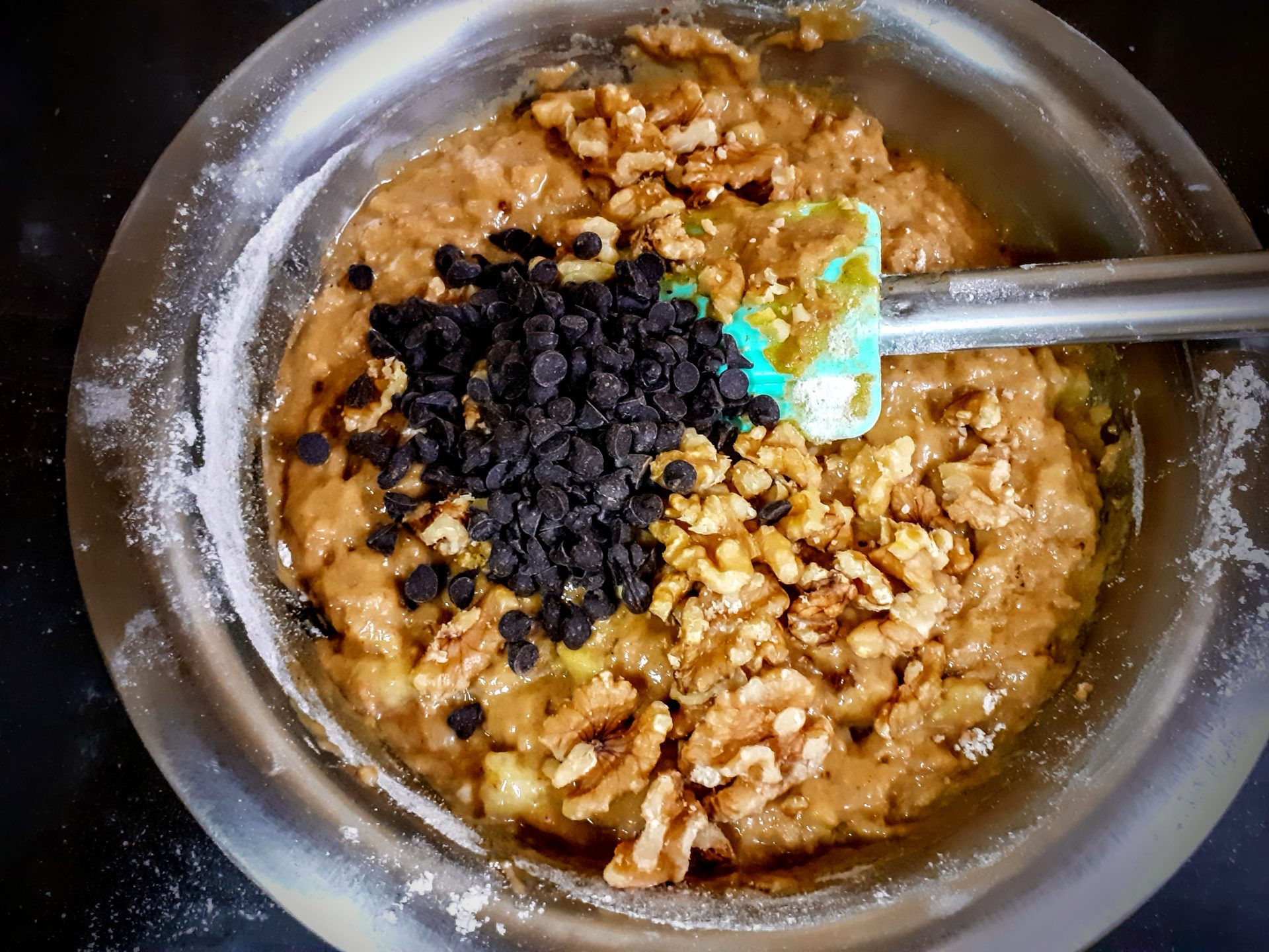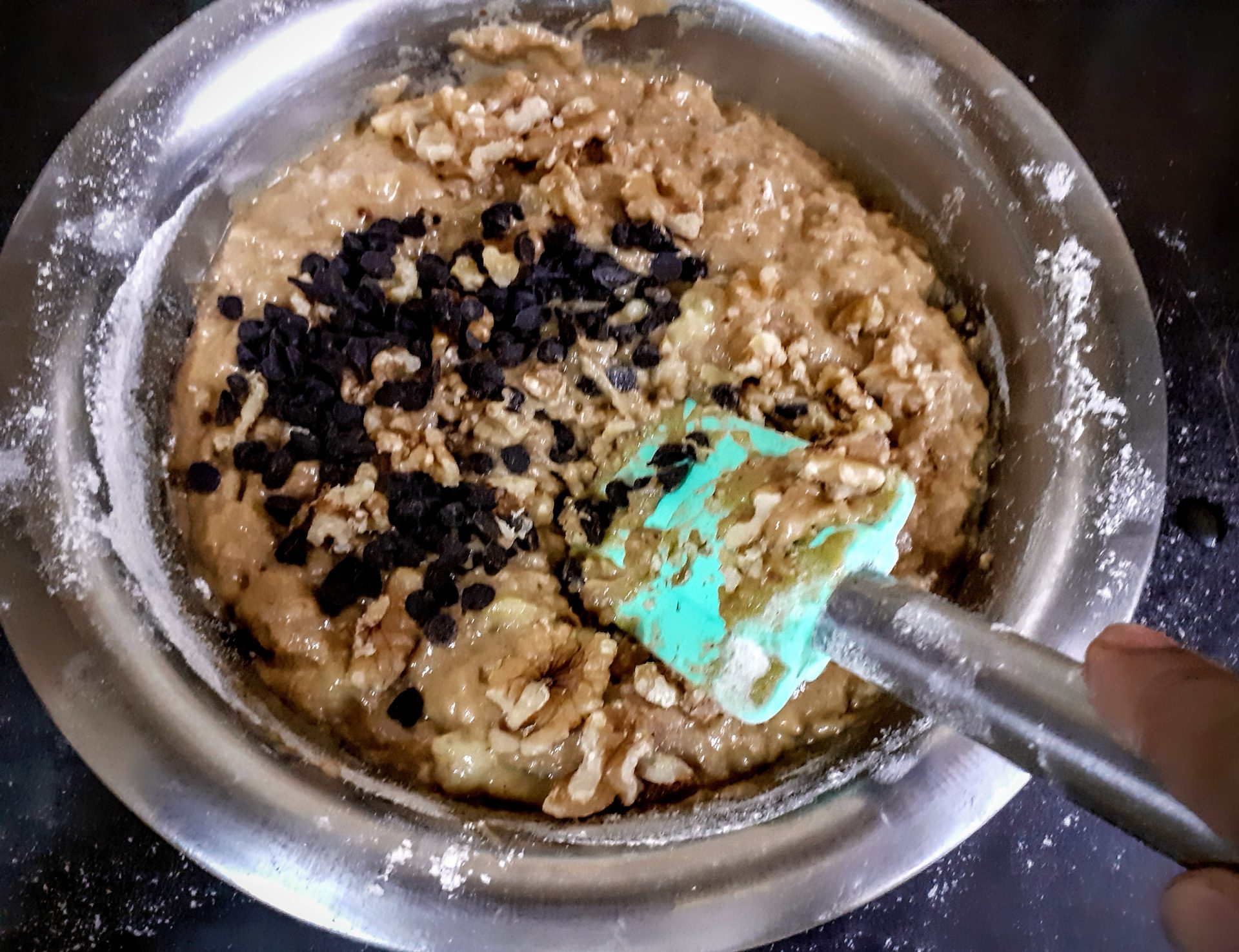 - I have just added some choco chips for the chocoholics at home and some walnuts for me. Brown sugar, eggs, and coconut oil combine to make this bread super moist.