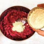- Do not be tempted to add more beetroot than required, as then the mixture becomes runny, due tothe juiciness of the beetroot and becomes very messy to handle.