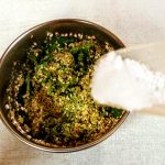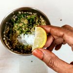 Heat a kadai or pan and drop in the sesame seeds. Stir continuously and roast them until they are hot to touch. We don’t want them to splutter. So just as a few splutter turn off the stove and transfer the seeds to a plate to cool. Now put the cooled seeds into a blender,and add the remaining ingredients- coriander leaves, green chillies, cumin seeds and give it a spin. Now add salt, followed by a squeeze of lemon and blend again to a semi fine paste. Use water if required. I used about 2 tbsp. The chutney is ready to serve.