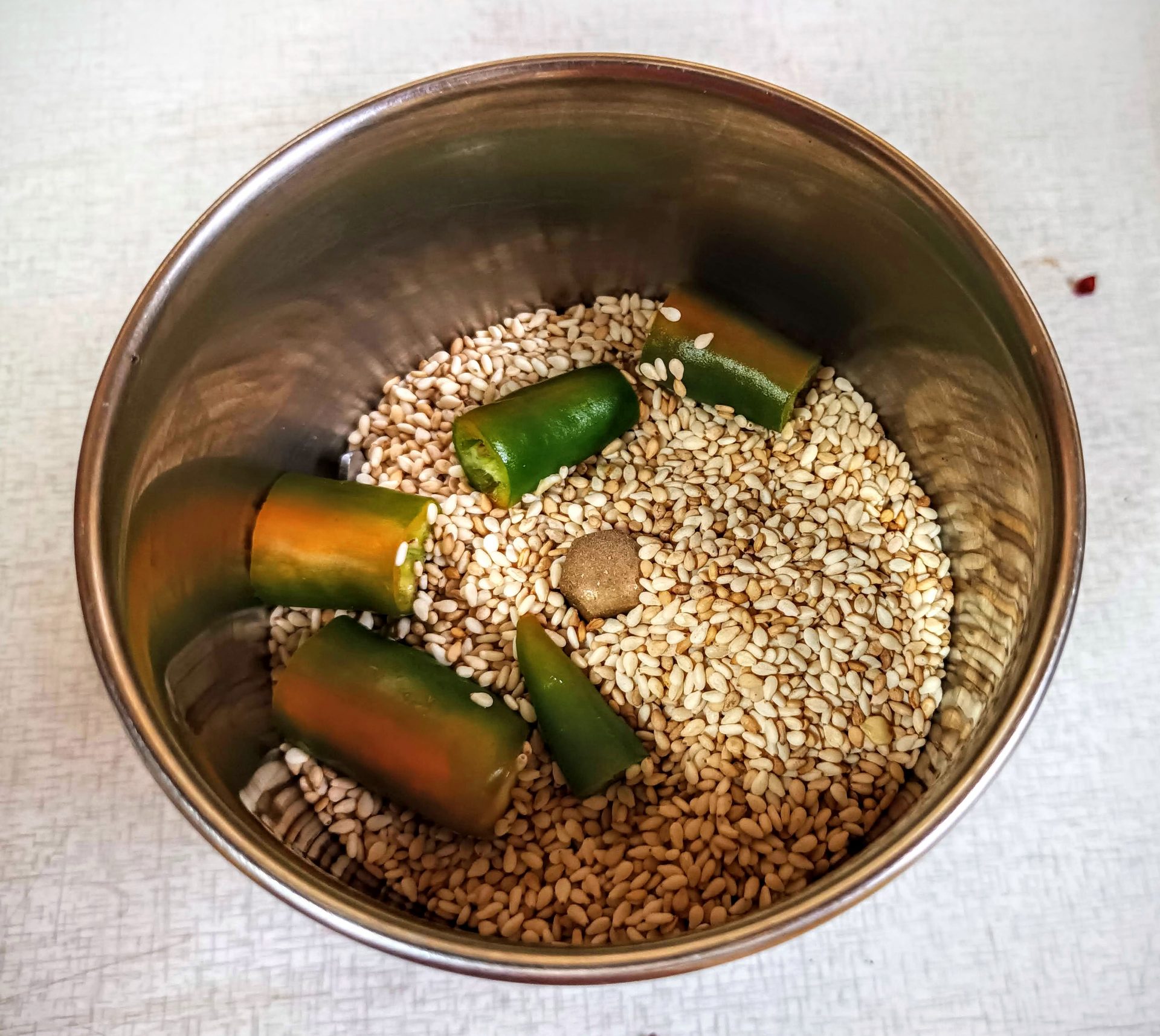3. I recommend not making this chutney with raw sesame seeds, that is without roasting them. Reason given in introduction.