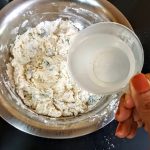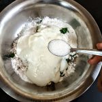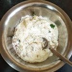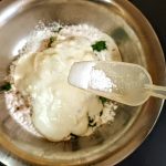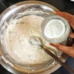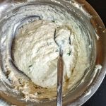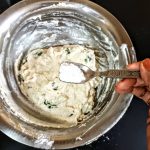 - Mix everything well with a spatula, now add water little by little to make a thick batter. Now add the baking soda, mix well,and leave the batter to ferment for 3 hours.