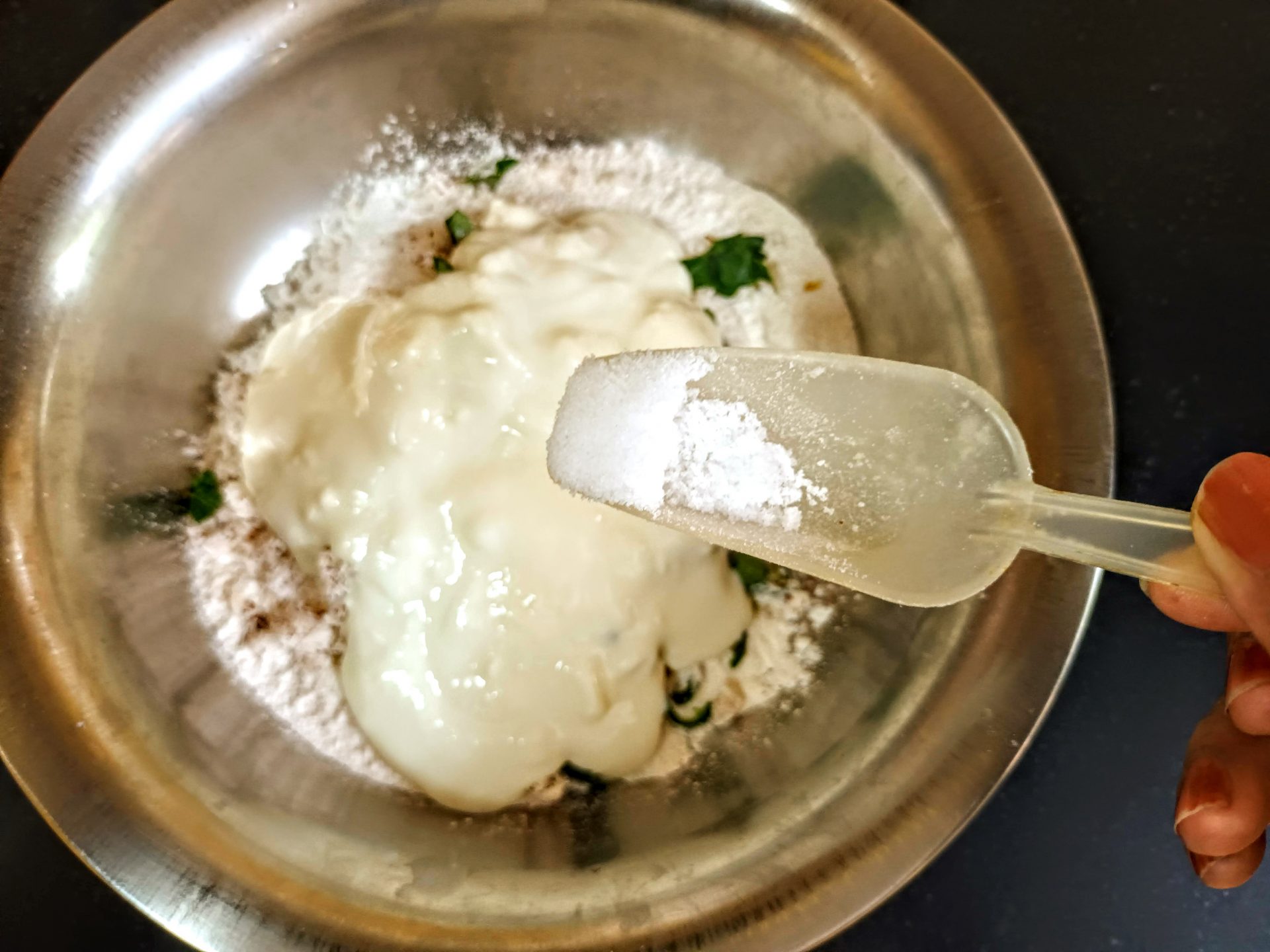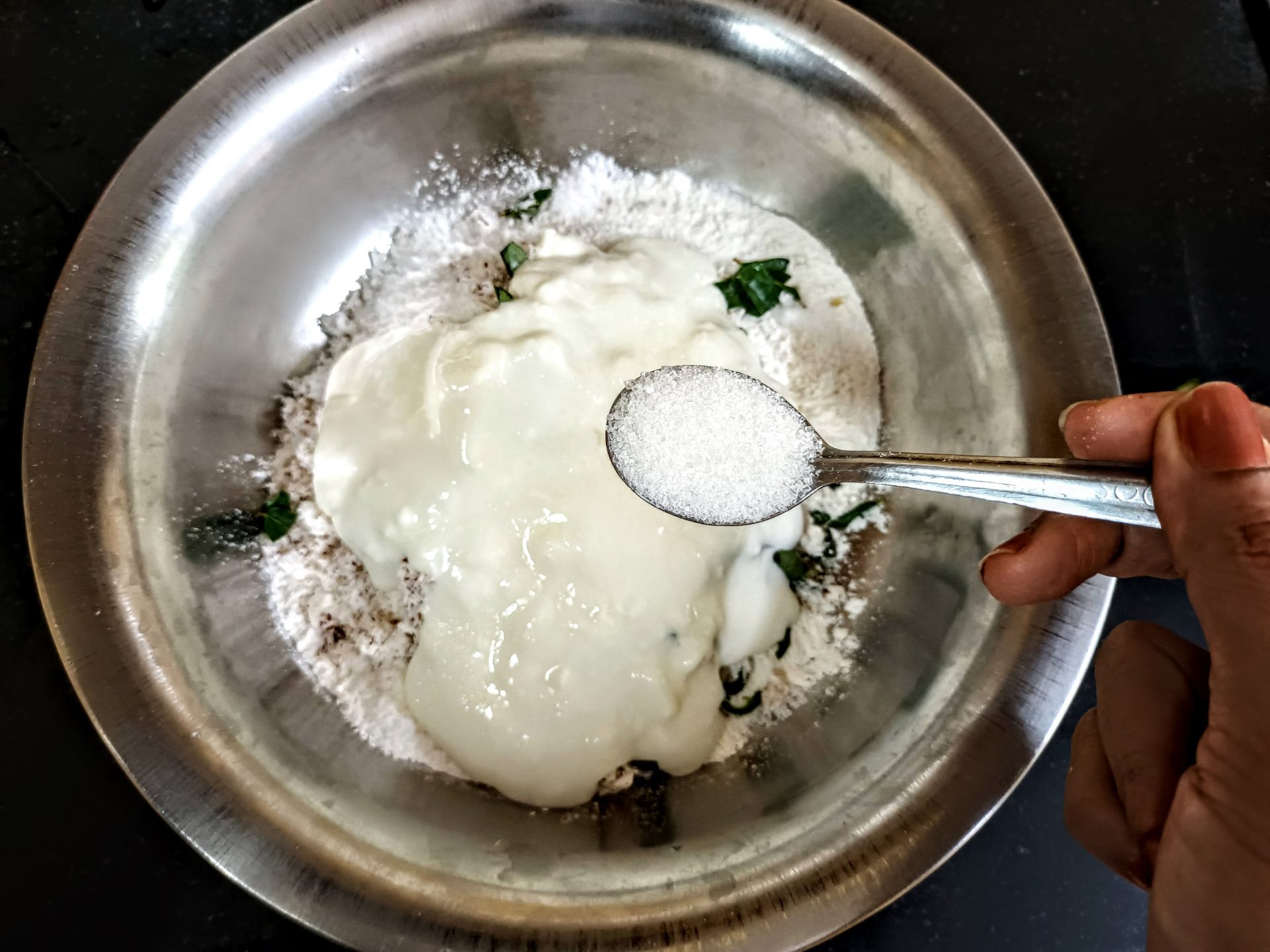 - Now add Curd, salt and sugar.
