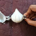 - To shape the Modaks with mould: Grease palms with sesame oil. Pinch small portions and make Gooseberry sized balls from the dough. Grease both sides of the mould with oil nicely. Now take one ball,and flatten it. Fit it into one half of the mould. Repeat,and spread the dough into the other half of the mould also. Now take the stuffing, and place it in the center of one side of the mould, close the mould to bring the sides together. With the dough overhang seal the bottom portion also. Now open the mould, and remove the modak gently. Check for any gaps,and seal them. Repeat for the entire dough. Get the steamer or cooker ready, and steam the Modaks for 10-12 minutes.