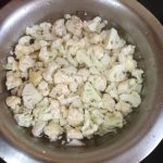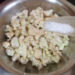 - Chop the cauliflower to florets, pour boiling water over them, add 1/2 tsp salt,and keep it covered for 10 minutes. After 10 minutes drain water and let the florets cool down.