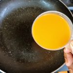 - Now to the same pan add 1 cup of the Orange juice, and bring it to a boil. Add salt, Soy Sauce, Red Chilli sauce (or a mix of 2 tbsp Red chilli sauce plus 1 tbsp of Schezwan sauce/chutney), Apple Cider Vinegar, and mix well.