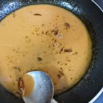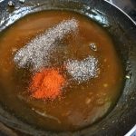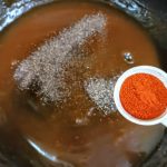 - Now stir the cornflour plus water mixture and add it to the pan gradually, stirring simultaneously. Keep stirring, until the mixture turns a little white and then pale and glossy. Now add about 1/2 cup or less of Orange juice to adjust consistency to your choice(check notes). Finally, add red chilli powder, and pepper powder,and stir well(check notes).