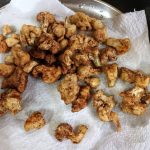 - Now take one floret at a time, roll it on the bread crumbs and drop it gently into hot oil, and deep fry. Drain on absorbent paper. Alternately arrange the florets on a baking tray lined with greased butter paper, and bake at 200 C for 15 minutes, or until the cauliflowers turn a light brown.