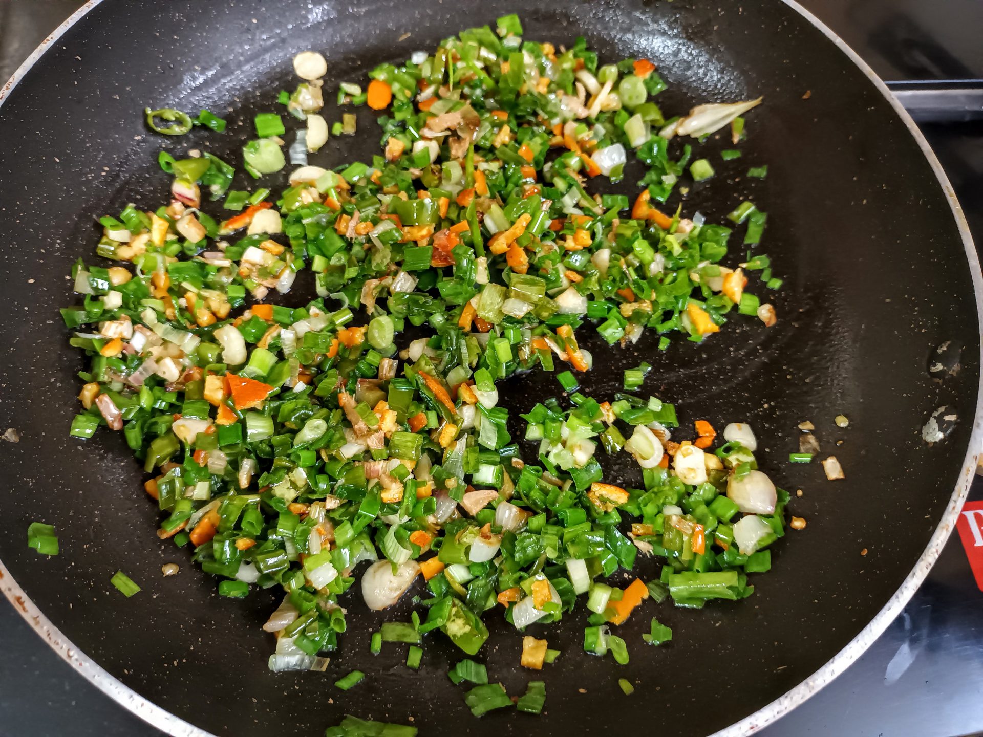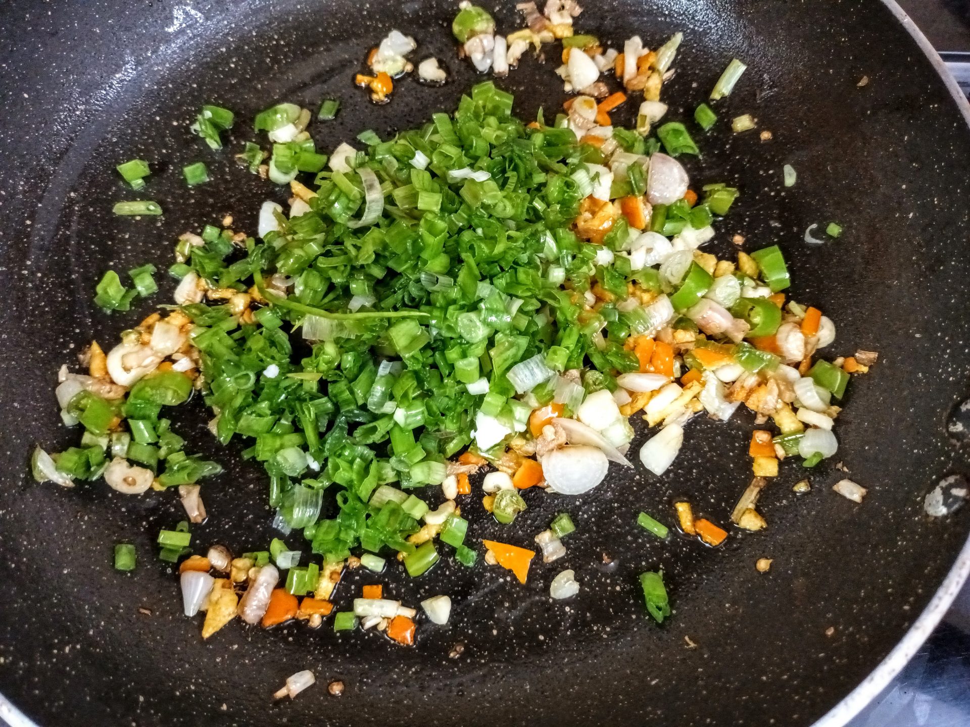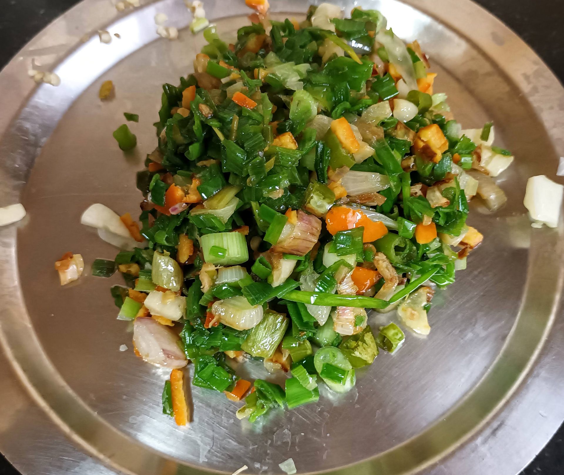 - Spring onion greens, and the bulb chopped finely 1 bunch