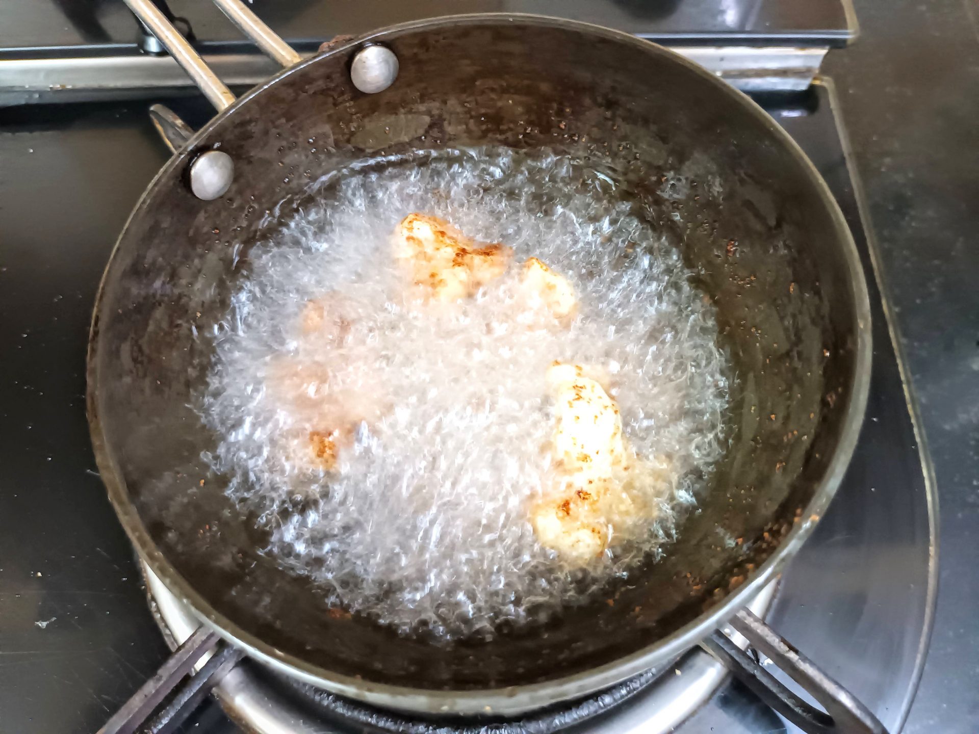 Well, the dish is similar to Gobi /Cauliflower Manchurian, except for the sauce. As the name suggests, it is an Orange juice based sauce. This recipe may vary from the other ones, for the reason that I have used the Orange rind,which imparts the real flavour. I would strongly recommend using it, as it gives so much Umami to the dish. I have also used the store bought Orange Juice. This helped in two ways. One, I didn’t have to add sugar, as the store bought juices have added sugar. Secondly, squeezing the juice at home, means having to squeeze many oranges, or if using a processor, then removing the seeds, as they make the juice bitter.