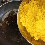 - Grate the Pumpkin and Keep it aside. In a Pan(preferably non stick), Take a tablespoon of ghee/clarified butter, and heat. Add the nuts and raisins and fry them until the raisins fluff up and the nuts turn a light brown. Remove the nuts and raisins on to a plate.