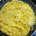 There are two ways to cook the Pumpkin for this pudding. One is to grate the Pumpkin and cook it in milk, and the other is to cook/steam the pumpkin in the cooker and then cooking it in milk for a short time. I have followed the former. This is because, when the Pumpkin gets cooked in milk, it takes on such a delicious flavour, and texture. I prefer a slightly grainy texture,as compared to a super smooth one.
