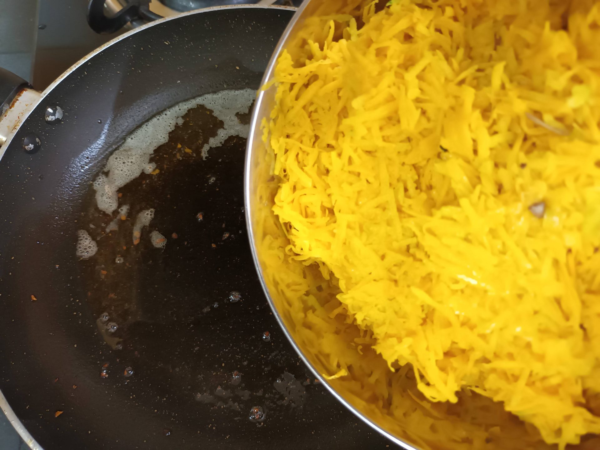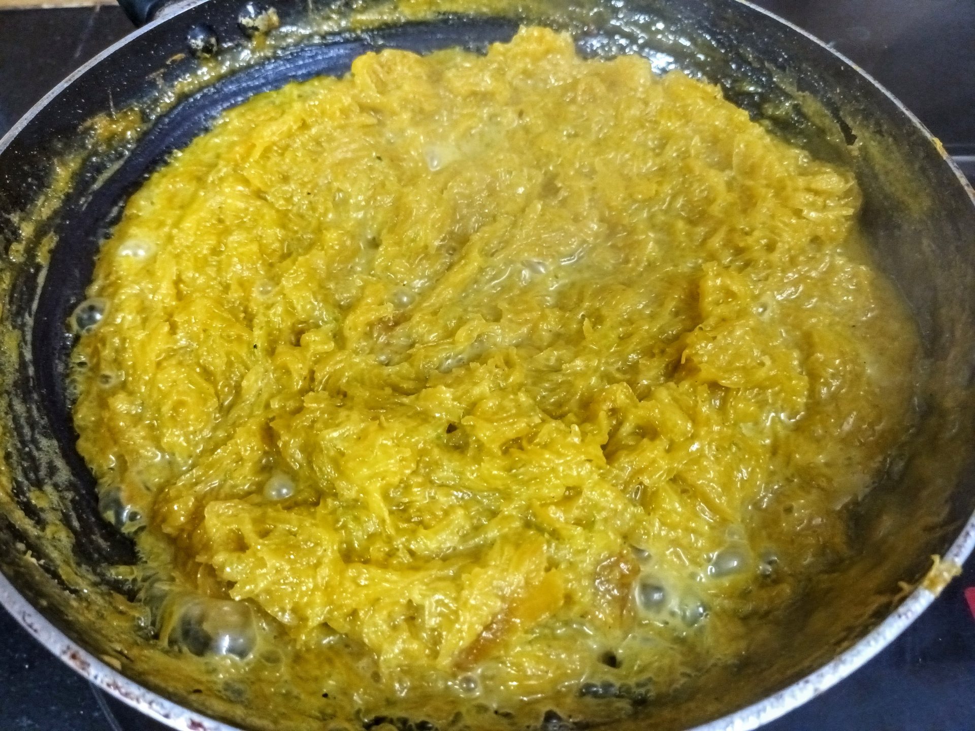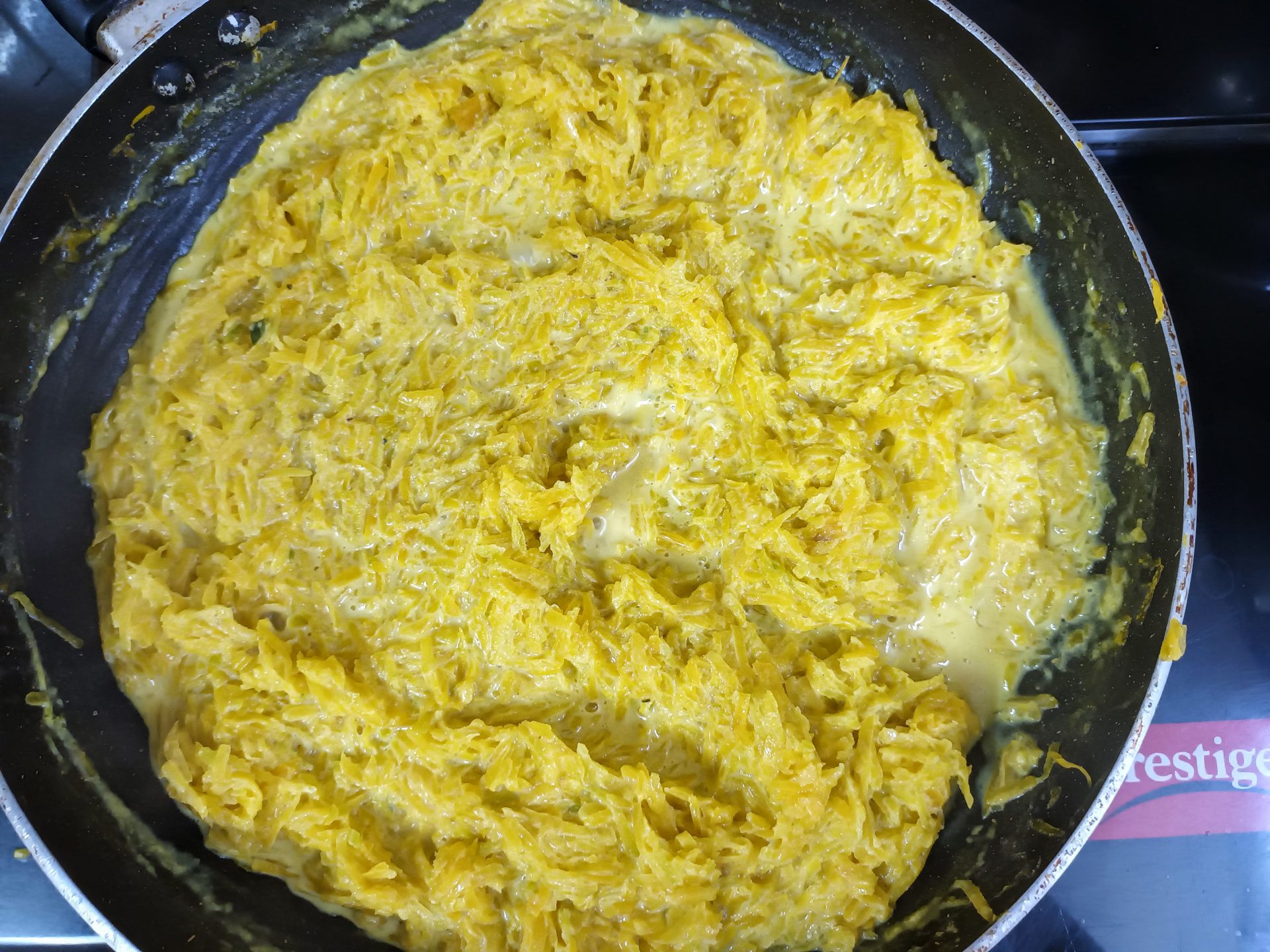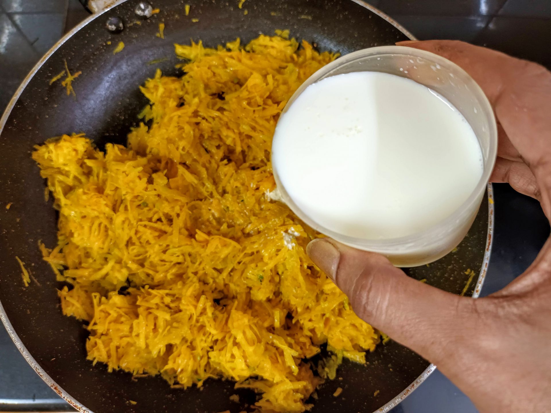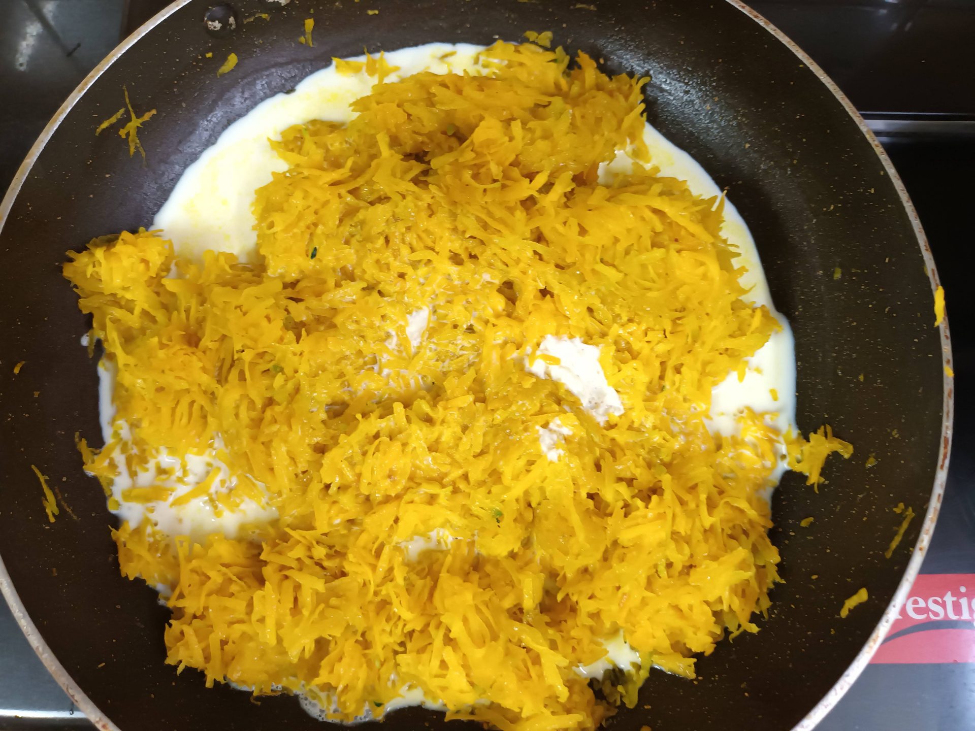 - Do not be tempted to cook it on high flame, as the milk may evaporate quickly, leaving the grated pumpkin half cooked. We want the pumpkin to be cook, yet retain its texture.