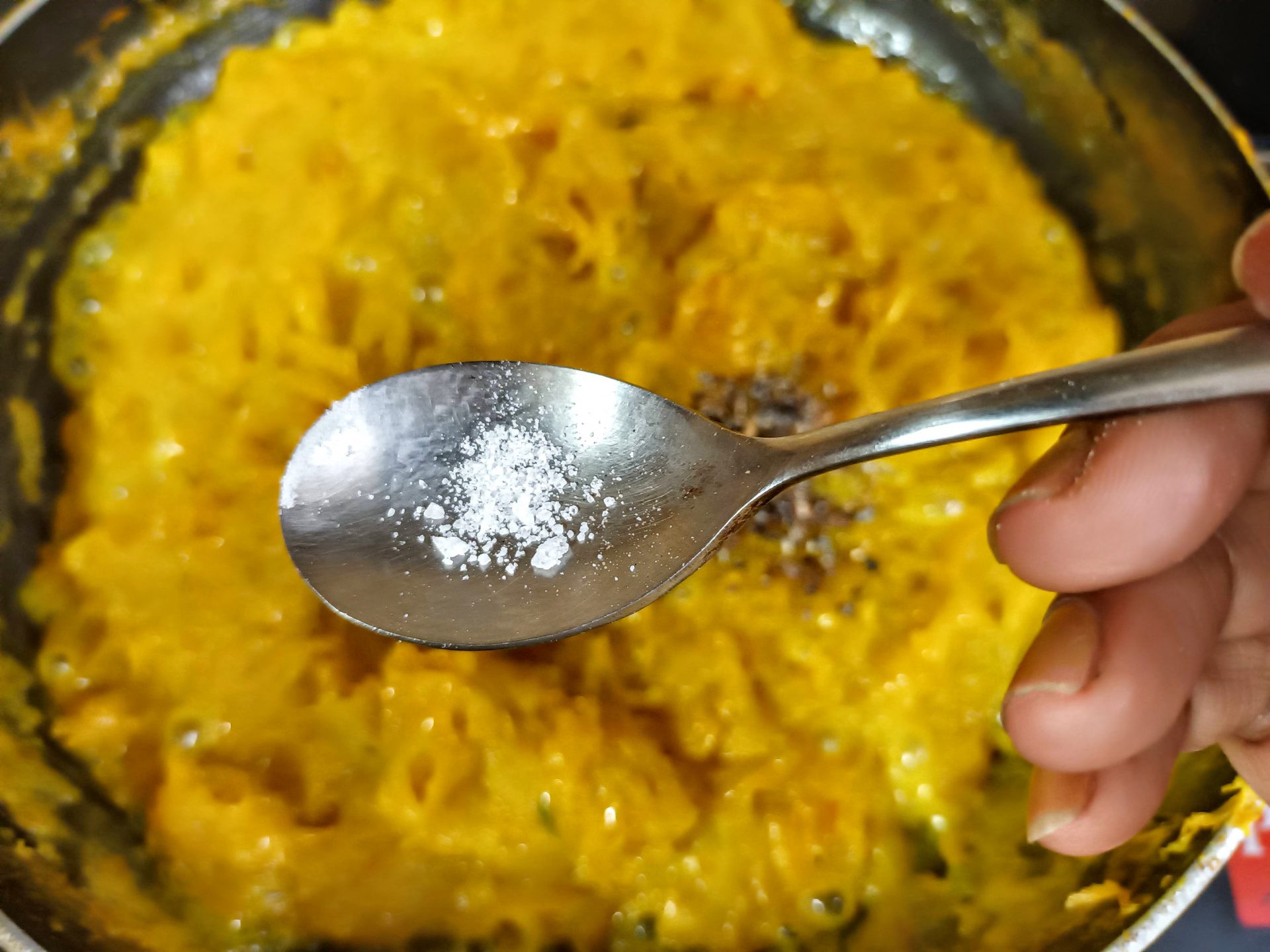 - If you have not used edible camphor before, then use it with caution. Here less is more. Just a pinch is a lot. Adding more can leave behind a bitter taste.