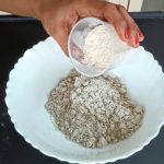 - In a mixing bowl take the Bajra/Pearl Millet flour. To this add the whole wheat flour and the chickpea flour.