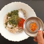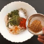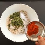 - Now add Dry Fenugreek leaves/Kasoori Methi , salt, turmeric powder, red chilli powder, coriander powder, fennel powder, and Carrom seeds. Mix everything well using a spoon or your fingers.