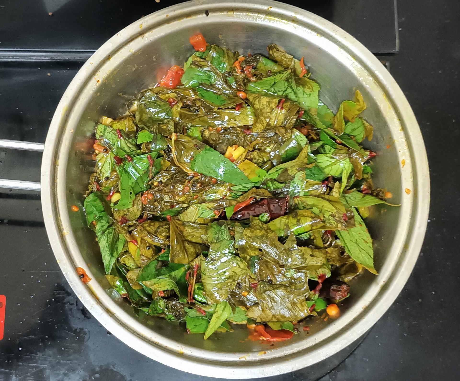 - I have used the red stemmed ones which are quite sour. In case you use the white stemmed ones, then add 1 tsp tamarind pulp or juice of half a lemon towards the end of the cook, before you add the Sesame oil.