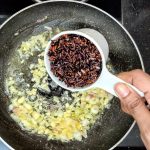 - Wash and soak the Black Rice for 4 to 5 hours. Later Rinse again, drain and keep aside. Now to a hot pan add the butter. When the butter melts, add the crushed garlic and saute for 30 seconds. Further add the onions, and saute until they turn transparent. Take care not to brown them.