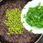 Wash and soak the Black Rice for 4 to 5 hours. Later Rinse again, drain and keep aside. Now to a hot pan add the butter. When the butter melts, add the crushed garlic and saute for 30 seconds. Further add the onions, and saute until they turn transparent. Take care not to brown them. Now add the Black rice, followed by a cup water or broth. Stir well and cook covered on medium high for until almost all water evaporates. Now add a cup of broth, stir and cook covered again on low flame for 5 minutes or until the rice is almost cooked. A little aldente is ok at this stage. Now open the lid, stir and add another cup of water or broth. Add salt, and pepper powder, cover and cook again until the rice is soft(read notes). Now open the lid, stir and add the wine if using. Further add the cooked Green Peas and the Spring Onion greens, add another cup of broth or water and cook over a low flame, uncovered. Now the rice gets creamy, to fasten the process, keep mashing with the back of a ladle, whenever you stir. Finally add the Parmesan Cheese, and keep stirring until until all the cheese melts and combines with the rice. The final result must be creamy. At this stage turn off the stove, sprinkle some cheese and serve hot.