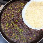In this recipe I have used some homemade Red Wine given by a dear friend. We are a family of teetotallers, and this red wine is used only when I make Rissoto. Imagine having a bottle of homemade wine lasting 4 years. That said, using wine is optional. The wine helps to bring out the taste of the rice and cheese. Black Rice has a naturally nutty flavour, so using wine is not critical to the recipe.