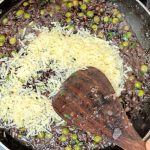 - Now open the lid, stir and add the wine if using. Further add the cooked Green Peas and the Spring Onion greens, add another cup of broth or water and cook over a low flame, uncovered. Now the rice gets creamy, to fasten the process, keep mashing with the back of a ladle, whenever you stir. Finally add the Parmesan Cheese, and keep stirring until until all the cheese melts and combines with the rice. The final result must be creamy. At this stage turn off the stove, sprinkle some cheese and serve hot.