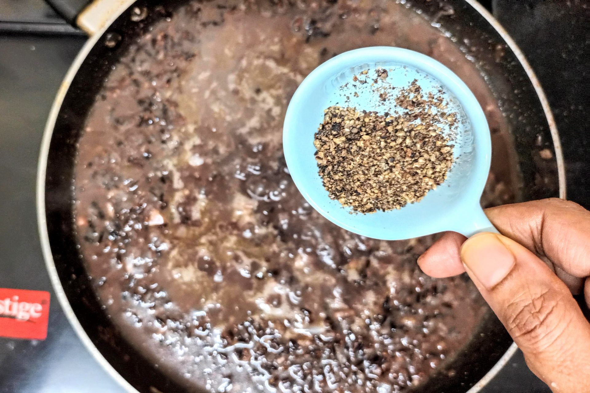 - Now open the lid, stir and add another cup of water or broth. Add salt, and pepper powder, cover and cook again until the rice is soft(read notes).