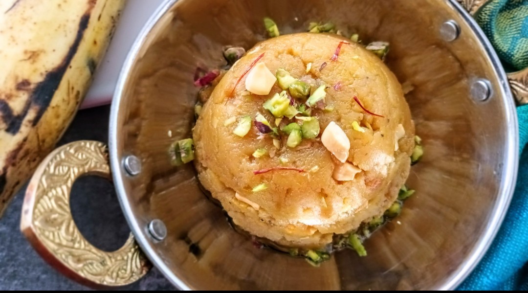 The Nendran Pazham Halwa is a guilt free dessert to indulge in. It requires minimal sugar, that can be reduced or increased to your requirement. Also the ghee( clarified butter)used can be modified as per choice.