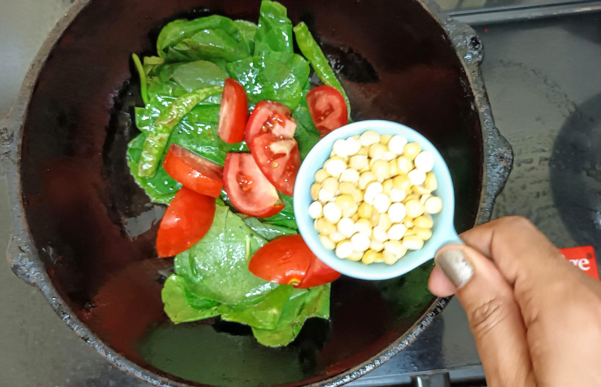 - I have used country Tomato/Naatu Thakkali/ Desi Tamatar in this recipe, as Tamarind should not be used here for the citric taste. As the country Tomatoes are a little sour, they balance the flavour well.