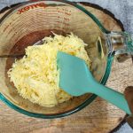 - In a mixing bowl take the butter at room temperature and add the grated Cheddar Cheese to it. Using a spatula cream them until smooth. ( no beater required).
