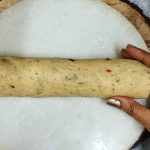 - Now shape the cookie dough into a cylinder, and wrap it well with a cling wrap. Put this into the fridge for chilling, for at least an hour.