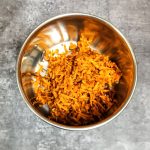 - Grate the fresh Turmeric rhizomes and put it in a blender. Add about 2 tbsp water and grind to a smooth paste. Keep this aside.