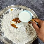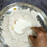 - Now adding water a little at a time, Knead to form a soft pliable dough. Apply oil to the dough, cover and keep aside. Rest it for 20 minutes.