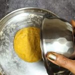 Pongal/Makar Shankranti (Indian festival) is the time when fresh Turmeric is harvested. Many Chutneys, Pickles, Curries are made during this time. The tubers are also sundried and powdered to be used through out the year. It was during this time that the idea of this recipe took form in my mind. What’s more, then I had to try it out. But a coincidence happened, where we ordered take away one day, and on the restaurants menu I found a similar recipe. We ordered it, and as I enjoyed that super soft Paratha, with turmeric notes that were so fresh, I knew that I must share this recipe with you all on the blog.