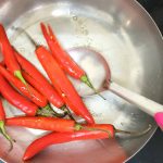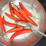 - While I have used Thai red chillies here, any mild red chilli peppers can be used. This recipe can also be followed with green chillies.