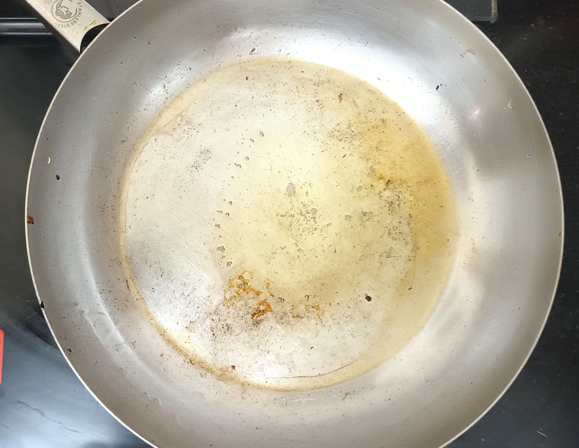 - To a pan add 1/4 th cup Sesame oil and heat. Now add the chillies/red peppers a few at a time and fry them until blisters appear on them. While frying the oil splutters a lot. To avoid this you can cover the pan partially with a plate. Once fried, remove the chillies onto a plate and cool them.